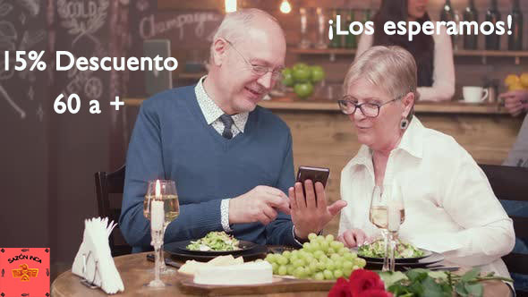Porque sabemos que lo que deseas es aprovechar al máximo tu tiempo, ven en cualquier momento y te regalamos un 15% de descuento en cualquier producto de la carta con tan solo portar tu documento de identidad que avale que tienes de 60 a más años. Y recuerda que, si son un grupo mayor a 6 personas que cumplan el...